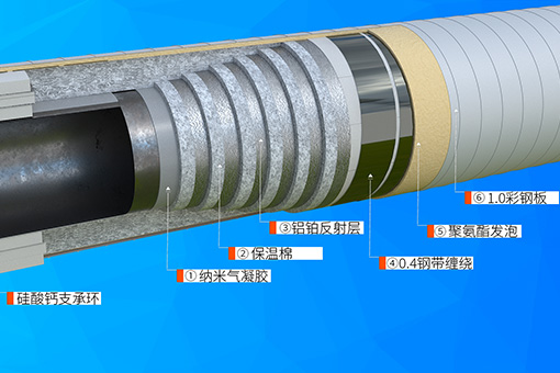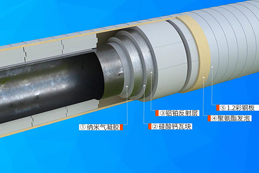 外保溫層選用硬質(zhì)聚氨酯泡沫材料,耐熱性較低但隔熱保溫性能很好,同時聚氨脂發(fā)泡的延展性具備穩(wěn)固作用,解決了傳統(tǒng)保溫結(jié)構(gòu)因熱脹冷縮產(chǎn)生和增大塊間空隙的問題。